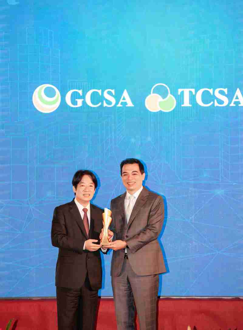 达全方位永续表现获全球永续奖及台湾永续奖肯定,,,由副总统赖清德颁奖 (左),,,,888.BY集团电子游戏总经理柯富仁 (右) 代表领奖