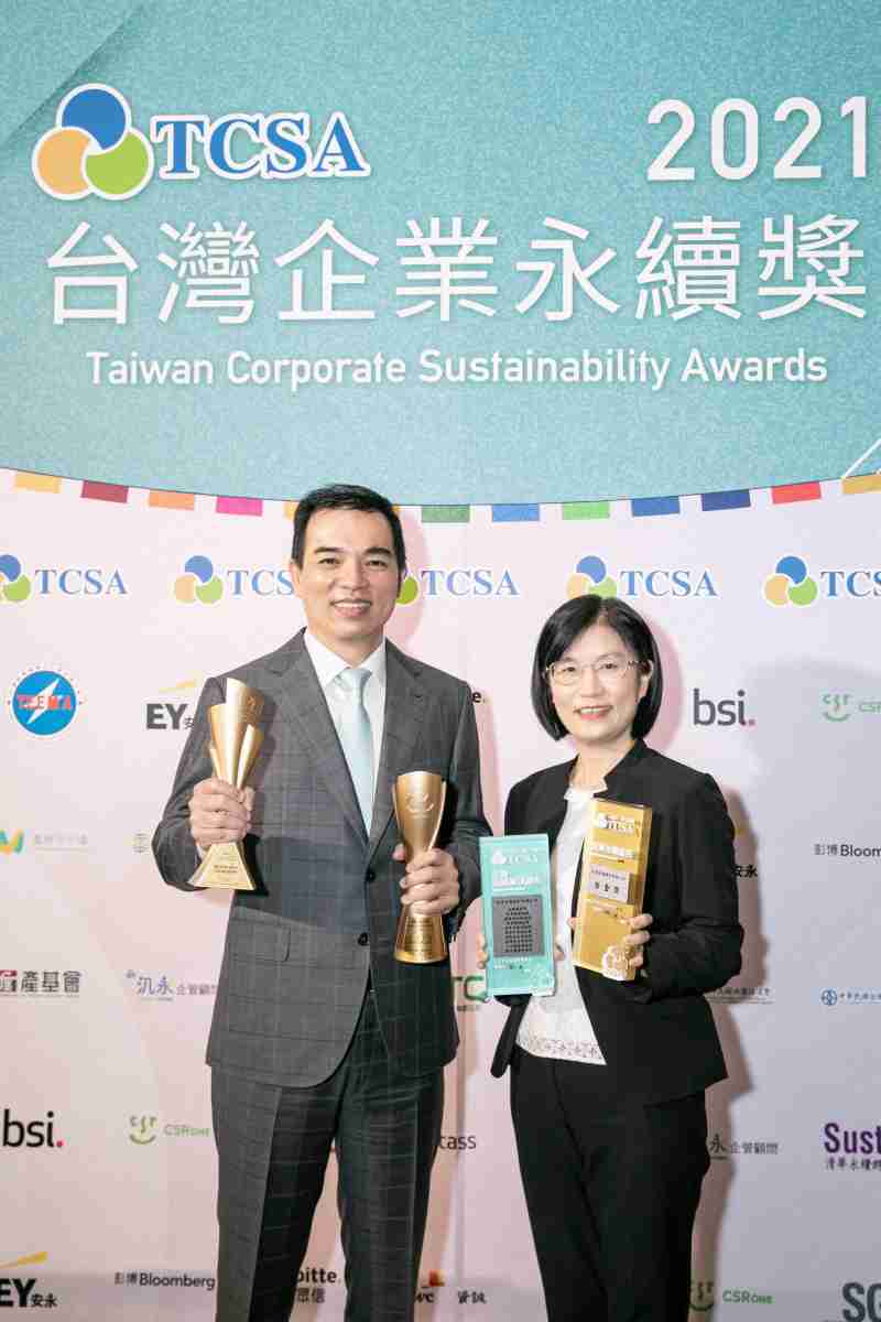 达在台湾永续奖所评比环境、、社会、、、治理等各面向的永续绩效均获高度肯定 (左:888.BY集团电子游戏光电总经理暨营运长柯富仁,,,,右:888.BY集团电子游戏光电永续长古秀华)