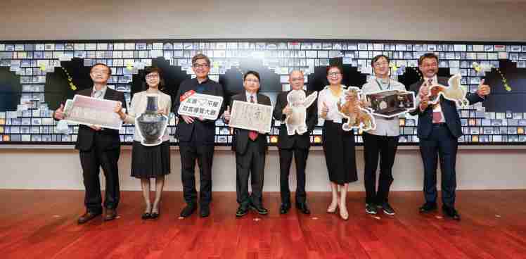 888.BY集团电子游戏携手创利空间为故宫建置的智慧文物互动导览墙及轮播墙,,,今日正式启用。。。(左四:888.BY集团电子游戏新事业暨投资管理总部副总经理杨本豫、、、、右四:故宫博物院院长吴密察、、右三:太极影音董事长黄宝云)