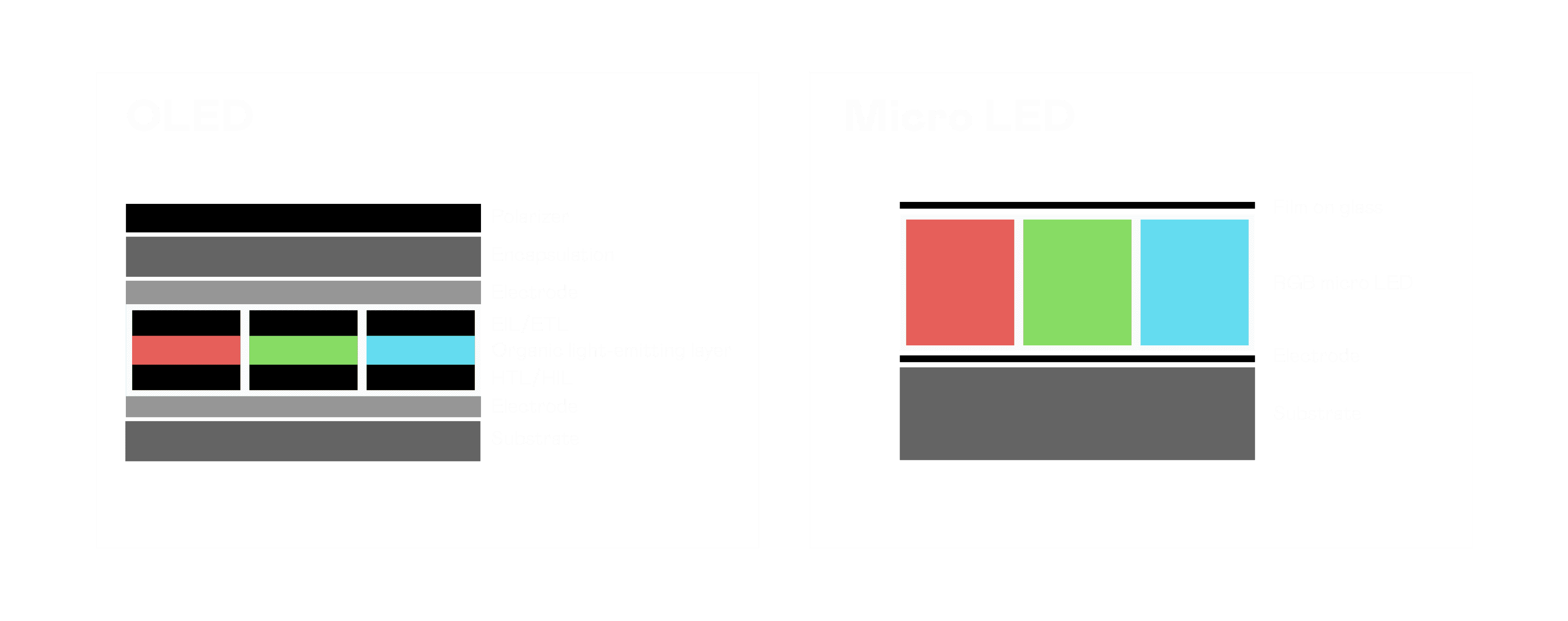 以 LED 做为显示画素,,可让 LED 的发光效率发挥到极致,,,从而让显示器具备优异的亮度表现,,,,不论是在户外或室内,,,,均具备出众的显示效果。。同时,,与使用有机材料的 OLED 相比,,,LED 具备更稳定、、、寿命更长的特性,,,不仅不会有画面烙印问题,,,,而且更不容易出现故障、、坏点。。。。